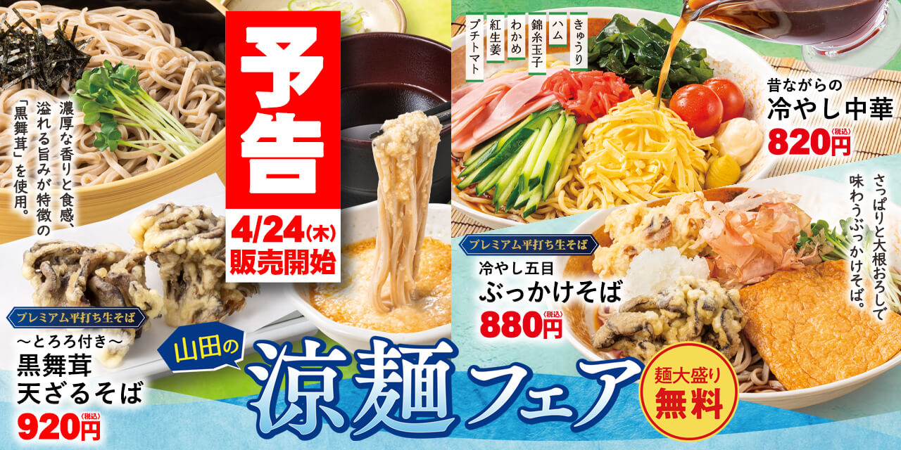 2025年4月24日(木)より、「山田の涼麺フェア」と題しまして、毎年恒例の「冷やし中華」と、