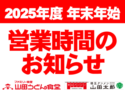平素より山田うどん食堂、埼玉タンメン山田太郎をご愛顧いただきまして、誠にありがとうございます。