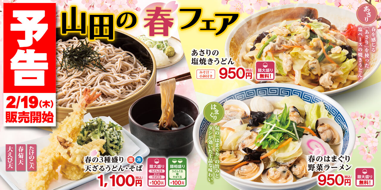 2026年2 月19 日(木)より、「山田の春フェア」と題しまして、春の食材を使用した新メニューを販売いたします。